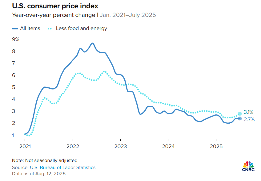 Optimistai apie infliacijos perspektyvą praėjusios savaitės žinios apie vartotojų kainų indeksą (CPI) buvo nuraminti. Ši priemonė liepos mėn. Išaugo 2,7%, palyginti su metų lygiu, nesikeitė nuo birželio. Kai kurių stebėtojų teigimu: tarifai, pasak tarifų: Tarifai ir toliau daro nedidelį poveikį kainoms, o tai savo ruožtu teikia paramą teigdamas, kad Fed turi aiškų kelią mažinti įkainius rugsėjo 17 d. FOMC susitikime.
