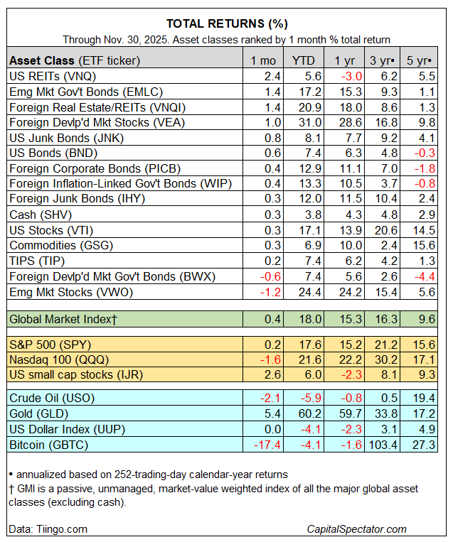 Dauguma pagrindinių turto klasių lapkritį pakilo, o tai padidino praėjusio mėnesio platų pelną, pagrįstą ETF tarpinių serverių rinkiniu. JAV investicijų į nekilnojamąjį turtą fondai pirmavo, praėjusį mėnesį fiksuodami didelį pelną.